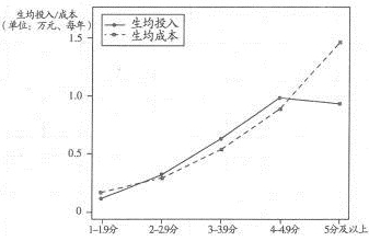 21.右面是以质量等级分1分为一个单位,对幼儿教育不同教育质量班级的生均投入与生均成本进行分组统计后绘制的曲线图,请概括其内容,并对幼儿教育与投入提出建议。(6分)