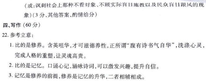 陕西省咸阳市2017届高三高考模拟检测(二)语文试题参考答案