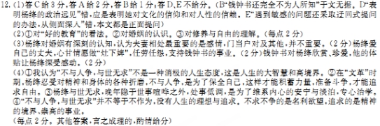 (3)杨绛由宽裕的娘家嫁到寒素的钱家,为什么没有“下嫁”的感觉,请作简要分析。(6分)